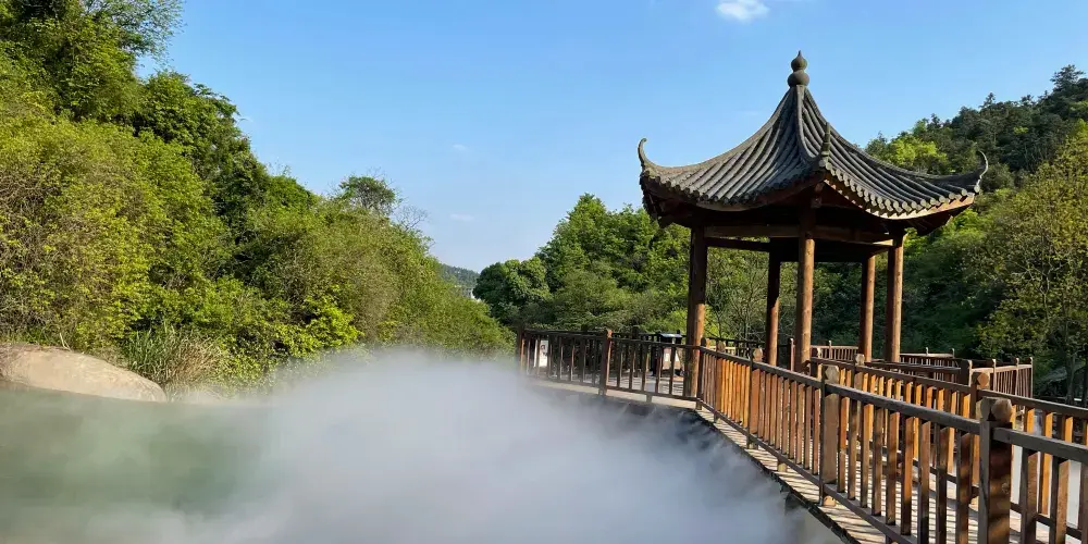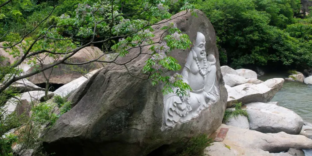 迎笑堂,在寺後峰上,不知建於何年,堂內以多首題壁詩而名聞於世。唐朝以來,先後有劉禹錫、牟融、曹松、歐陽持、嶽飛等名人題詩於壁。堂前有九節筇、千隼橘、鶴良松。妙高台,台在寺前,北宋無盡居士張商英(尚書右僕射)遊寺,寺僧保寧國鞏迎於半途,二人問答組成了一首好詩,後題刻地妙高台上。慧泉,在大雄寶殿後面,泉從地下裂隙中冒出,由於地下氣體上逸,使泉水有規律地發出“咕、咕”聲。泉水清沏見底,口感微甜,是上好的礦泉水。泉上建有“真源亭”,亭柱上鐫對聯:“慧燈常明照見五蘊皆空,泉水澄清洗滌不淨塵勞。”