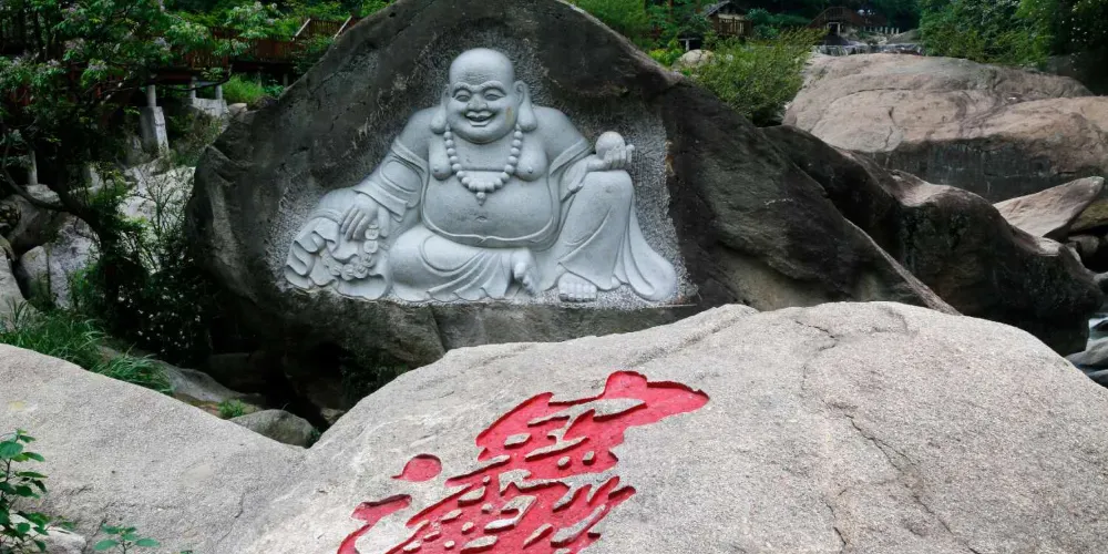 抗日戰爭期間,古寺部分殿堂被日本侵略軍燒毀。抗戰勝利後,寺字得到修繕,又請本鄉石工雷世森在洪崖亭下峭壁上,鐫刻了“阿彌陀佛”四個大字。
