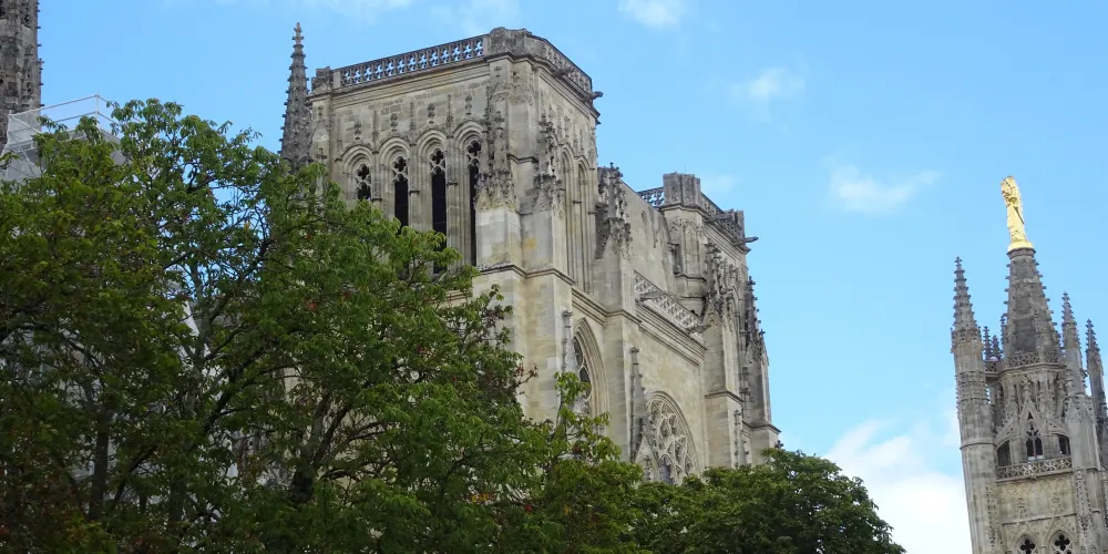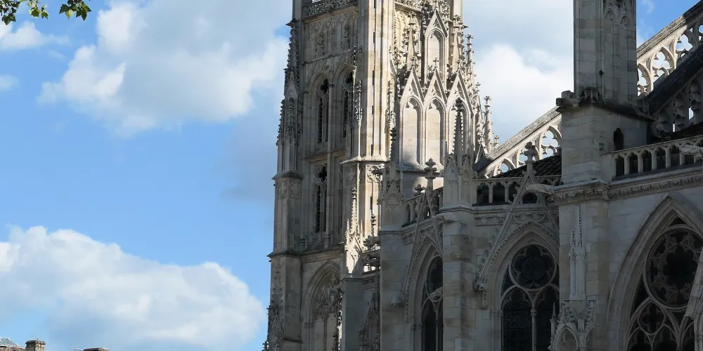 聖安德列大教堂位於市中心,隔著教堂前的廣場和市政廳相對。教堂建於11世紀,主殿是羅馬式樣的建築。在英國統治時代,這座教堂因被認為規模小而曾擴建過。1137年,路易7世和阿莉葉諾·達基特努在這座教堂舉行過婚禮。