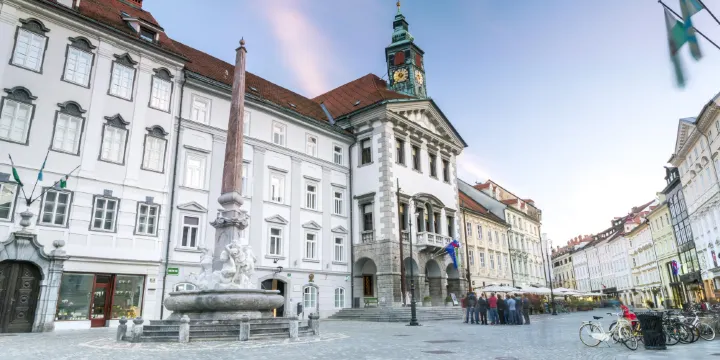 城市廣場盧布爾雅那的中心廣場,廣場不大,中間是建於1751年的巴洛克式的卡尼鄂拉噴泉,方尖碑式的柱體底座上,雕塑著三組精美的大理石雕像。據說它們分別代表著斯洛維尼亞的三條河流:薩瓦河(Sava))、克爾卡河(Krka)和盧布爾雅那河。
