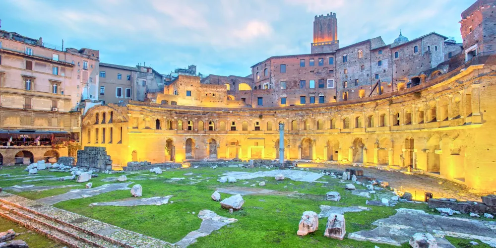 這裡也是古羅馬的購物中心,有約150 間店鋪,所賣的物品也是包羅永珍,鮮花、香料、蔬果、海鮮都有,還有裁縫店和修鞋的匠人。據說古代羅馬時期以低廉的價格將穀物賣給市民,而圖拉真大帝時代為了更加討市民的歡心,設立了這個大市場,將穀物和葡萄酒、橄欖油等分配給市民。現在的圖拉真廣場雖已失去了購物中心的職能,在這裡走走卻也另有一番風味。