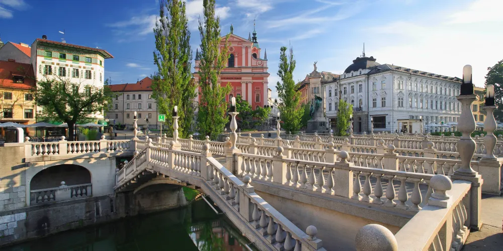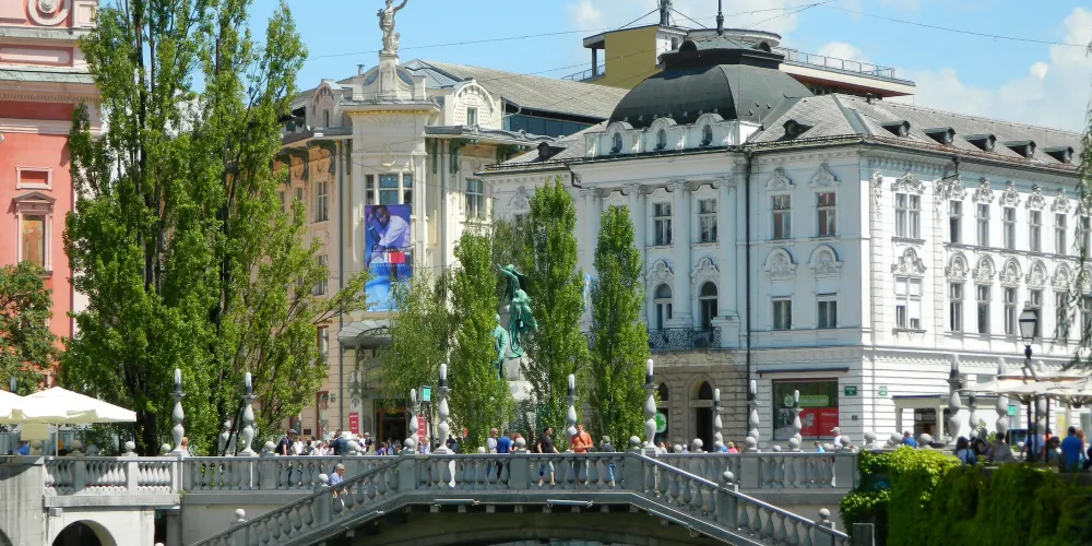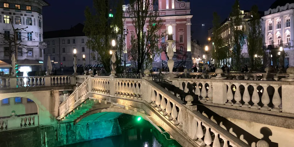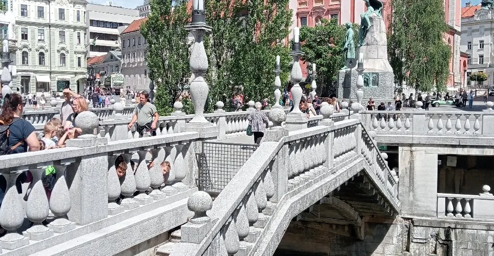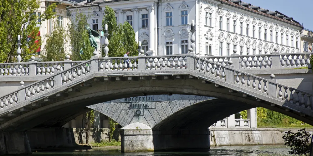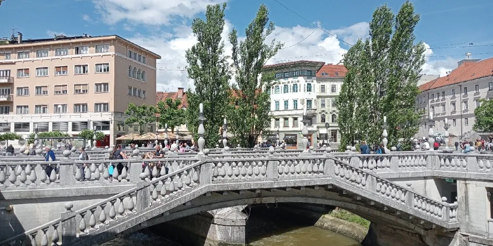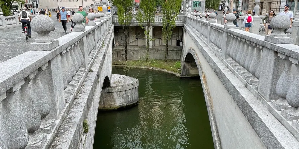 三橋,又稱三重橋,得名於主橋和兩側的附橋。這座建於公元13世紀的人行橋是橫跨盧布爾雅那河上最古老的橋,白色的橋均是經過19世紀修複後的樣子。1929至1932年斯洛維尼亞民族的偉大建築師 Jože Plečnik在原有石橋的基礎上添加了兩側的副橋而形成了今天的三重橋。