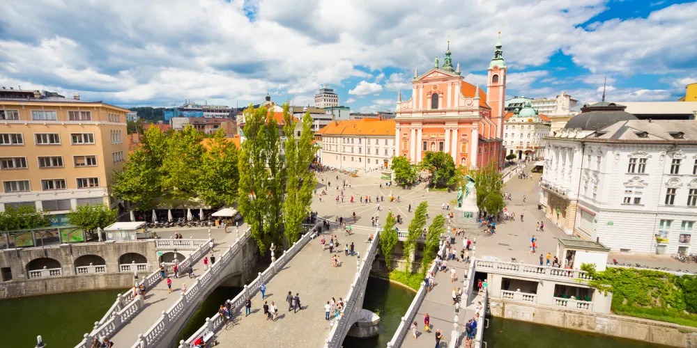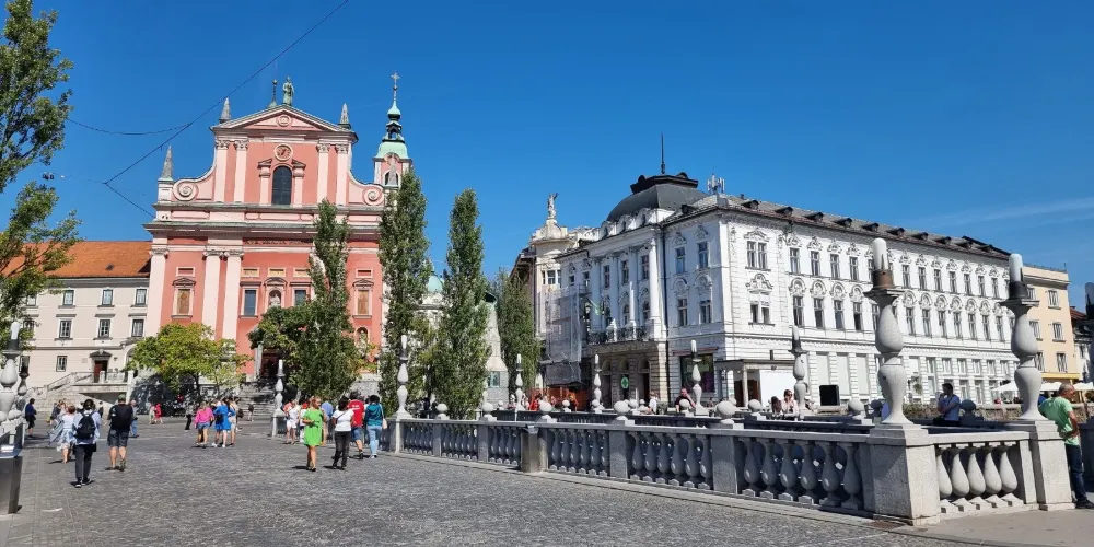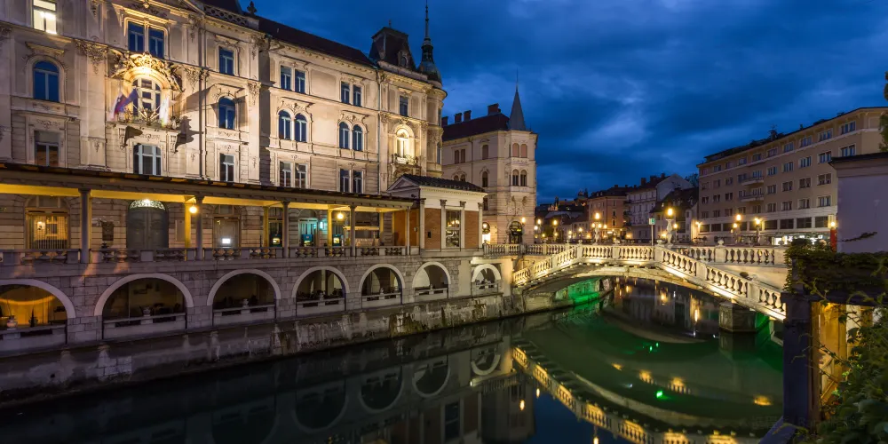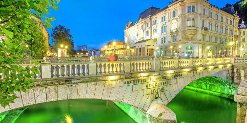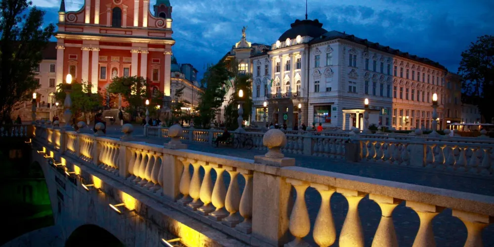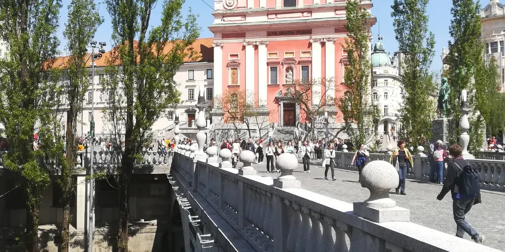 三橋,又稱三重橋,得名於主橋和兩側的附橋。這座建於公元13世紀的人行橋是橫跨盧布爾雅那河上最古老的橋,白色的橋均是經過19世紀修複後的樣子。1929至1932年斯洛維尼亞民族的偉大建築師 Jože Plečnik在原有石橋的基礎上添加了兩側的副橋而形成了今天的三重橋。