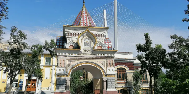 這座凱旋門為迎接皇太子而建,他在遊歷多國後抵達海參崴。儘管在日本遭遇刺殺,尼古拉太子倖免於難,並繼續他的旅程。凱旋門建於1891年,後來因蘇聯時期的改造和道路建設而拆除。 2003年,重建後的凱旋門重新開放,成為海參崴的重要歷史地標。許多俄羅斯人在此拍婚紗照。