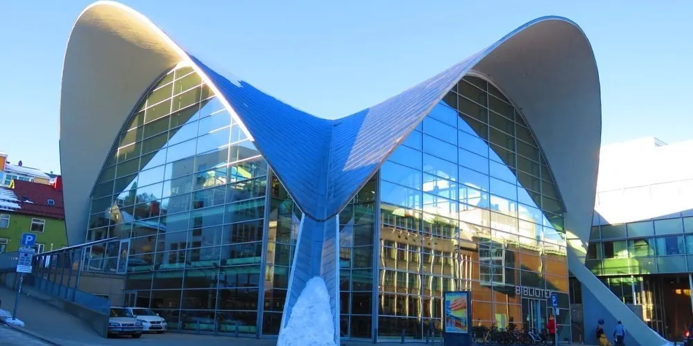 Tromso Public library and City Archives 位於挪威特羅姆瑟,外觀設計新穎,館內寬敞寧靜。是一個集讀書、休閒於一體的圖書館。