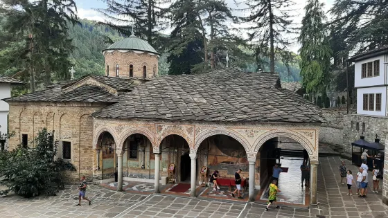 Troyan Monastery是保加利亞第三大且具有歷史意義的東正教修道院之一,坐落於風景如畫的黑爾尼奧薩姆河畔。修道院的歷史可追溯至16世紀末,由一位修士建立,後因其神奇的「三手聖母」聖像而聲名遠揚。這尊聖像被認為具有療癒和保佑信徒的神奇力量,吸引了大量朝聖者前來膜拜。現存的主教堂建於19世紀中葉,教堂內外的壁畫色彩鮮豔,描繪了《末日審判》和《生命之輪》等宗教主題場景,展現了復興時期的藝術風格。如今,修道院仍是東正教徒的朝聖地,吸引世界各地的遊客。遊客可以參觀修道院內的博物館,了解修道院的歷史和文化,欣賞保存完好的建築和藝術作品,感受濃厚的宗教氛圍。