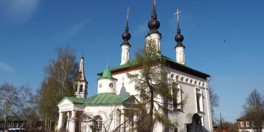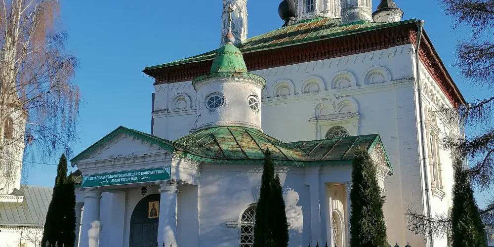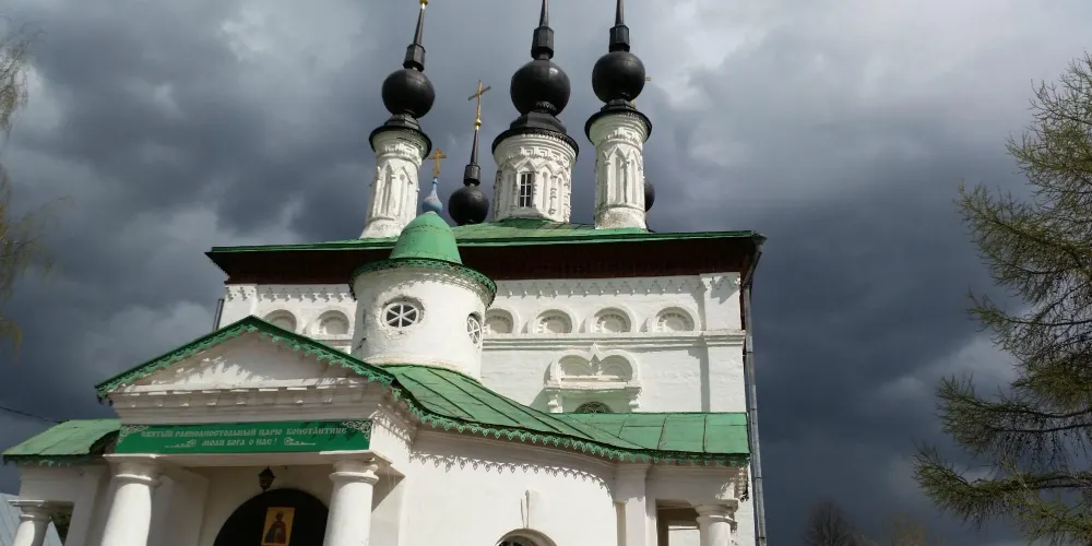 君士坦丁大帝教堂,位於俄羅斯的蘇茲達爾,是一座非常美麗的宗教建築。教堂外觀是彩色的,上方還有5個可愛的洋葱頭尖頂,非常值得一看。