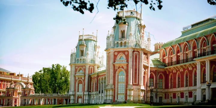 察裡津諾莊園位於莫斯科市區南部,1776年由當時俄帝國女皇葉卡捷琳娜二世下令修建,為了慶祝在一次俄土戰爭中取得勝利。但之後女皇對建成的宮殿非常不滿,又下令進行重建,女皇去世時宮殿還沒完全竣工,便就此衰落了。現在這裡成了公園,裡面植被茂盛,宮殿優雅,整體環境非常優美,是莫斯科市民郊遊、戶外野餐的好去處。