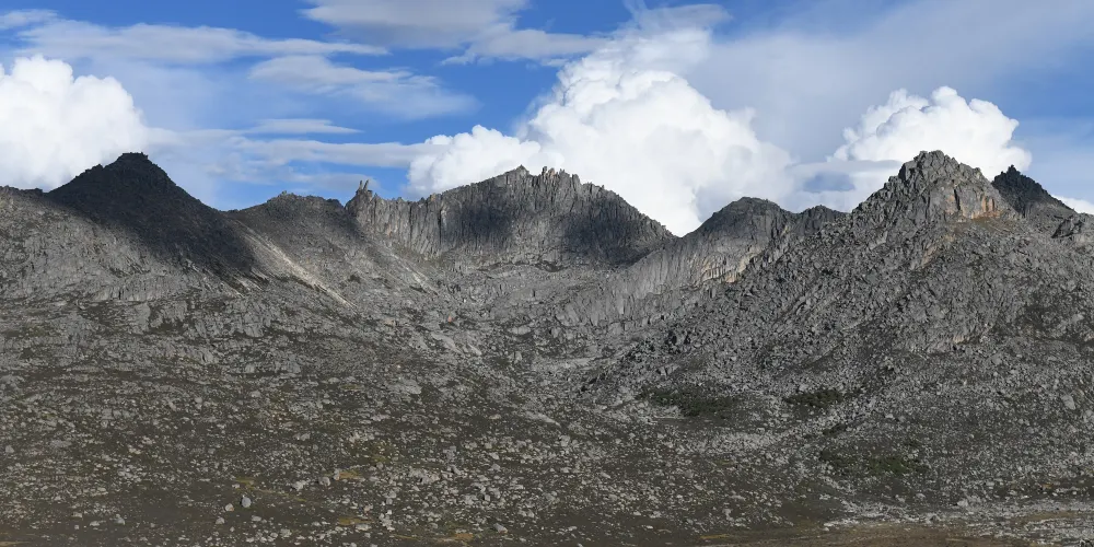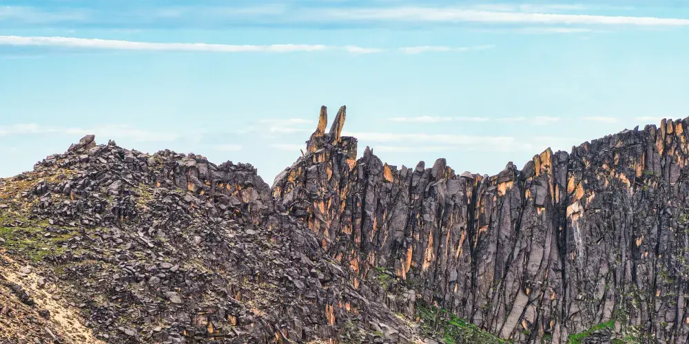 稻城兔兒山位於海子山自然保護區的北部,遠觀就像兔子耳朵屹立在風中。山勢十分奇特,山峯寸草不生,周圍是陡峭的冰蝕峯林地貌,映襯着晶瑩剔透的海子門,頗為壯觀宏大。