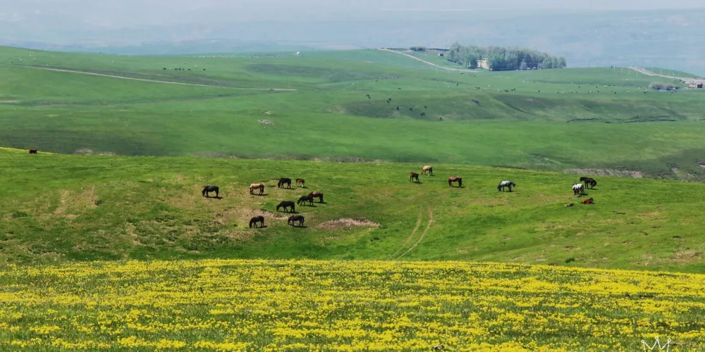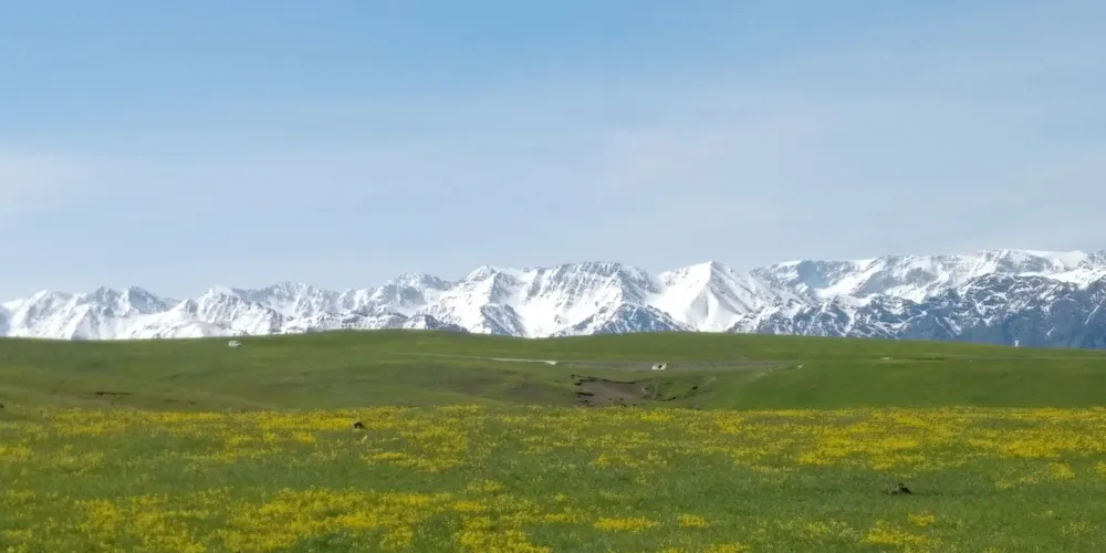 吐爾加遼草原幅員遼闊,三面環山,一年四季景色不同。春天草芽萌發,一片碧綠;夏天百花盛開,錯落有致;秋天牧草成熟,遍地金黃;冬天大雪覆蓋,漫漫潔白。