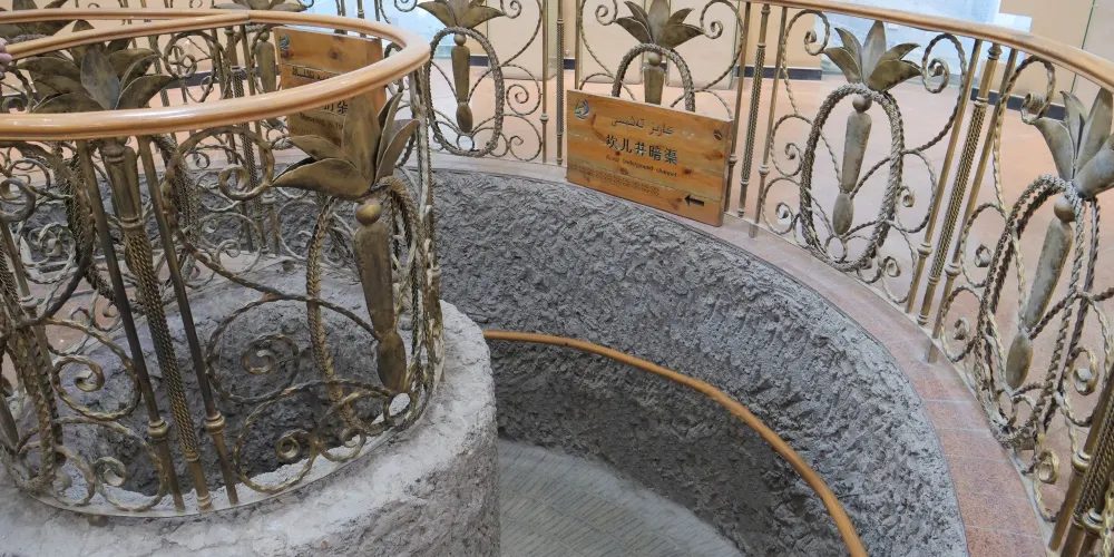 博物館分為地上和地下部分,包括100多米長的地下參觀通道、500平方米的地面陳列館、坎兒井分布圖、剖面圖、葡萄長廊和葡萄乾晾房等,通過大量的圖片、實物、模型,以通俗易懂的方式向遊客展現了坎兒井的結構、分布區域、功能和研究成果,讓遊客能夠真切地感受到"地下長城"的曆史變遷、修建過程。