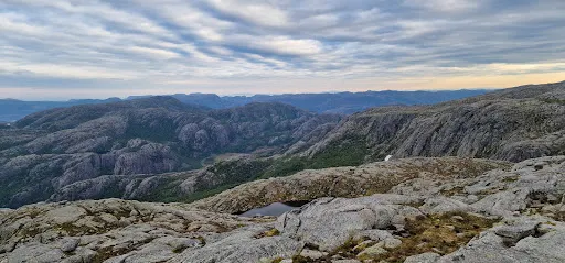 這是淩駕於呂瑟峽灣604米高空之上的巨大岩石,平台有600平方米,是俯瞰呂瑟峽灣、領略峽灣之美的理想地點之一。從山腳攀登至山頂約4公裡,須1-2小時左右,為了保護自然景色,挪威政府沒有在景區設置安全防護和其他人工設施,所以一定要注意安全。