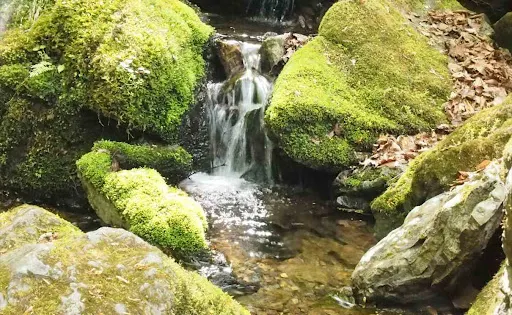 溪谷裏的水很清澈,就像是冰藍色的翡翠一樣,紅葉時期這裏的風景很美。