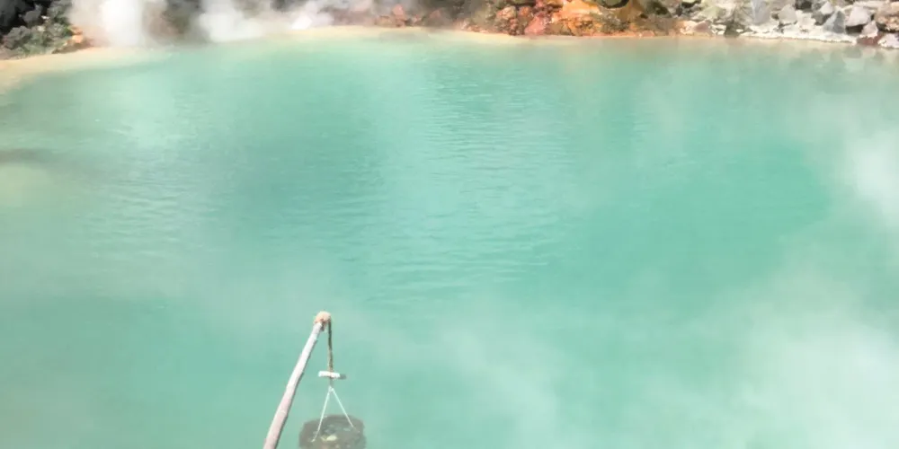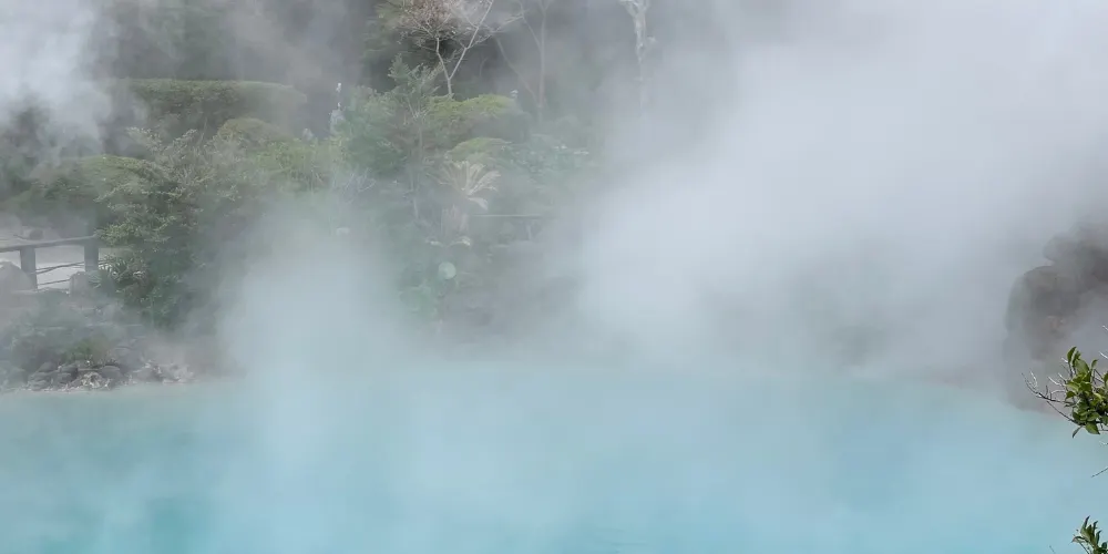 如果沒時間逛完所有地獄溫泉,推薦來“灶地獄”一次看個夠,因為這裡同時擁有六種地獄景觀!除了迷你版血池、白池、鬼石坊主地獄外,其中最漂亮的一個,呈tiffany藍的溫泉水在一天之中會有不同的顏色變化,配上湖面嫋嫋升起的熱氣,異常迷人。