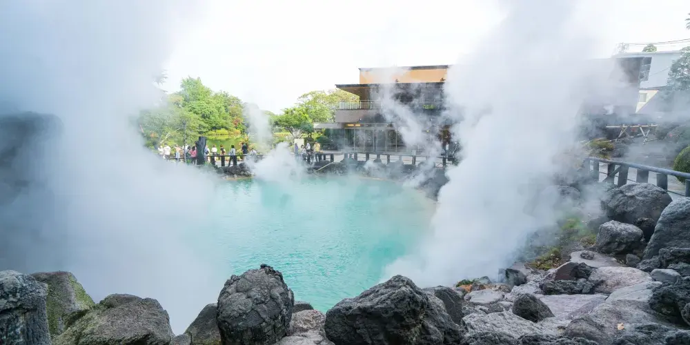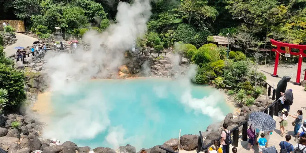 別府地獄之旅是別府地區著名的溫泉,被日本人選為西日本最佳溫泉。最熱門的溫泉是八大地獄溫泉。八大地獄溫泉分別是:海地獄、鬼石坊主地獄、山地獄、灶地獄、鬼山地獄、白池地獄、血池地獄及龍卷地獄。海地獄是規模最大的,而最具特色的則是血池地獄。它以「紅色溫泉」聞名,血紅色的泉水被日本佛教徒視為來自地獄的激流。由血池紅泥製成的「血池軟膏」可治療腳癬,在日本廣受歡迎。我們也不能忘記鬼山地獄,又稱「鱷魚地獄」。目前其中的鱷魚養殖場飼養了約100條三種品種的鱷魚。冬夜裡,飼養員每三小時巡邏一次,以防鱷魚從溫泉中爬出。同樣令人驚奇的是白池地獄花園中飼養的食人魚,但最引人入勝的是「變色水」——從溫泉噴出的水落入池中時會由無色透明變成藍白色。「地獄」是自古以來對溫泉的稱呼,當地保留此名以代表溫泉小鎮悠久的歷史。溫泉之所以被稱為「地獄」,是因為火山爆發後的地貌與佛教地獄景觀極為相似,煙霧瀰漫且寸草不生,令人畏懼。在別府,您可以用溫泉水製作罐裝飲料,並利用免費蒸汽直接煮飯。當地人利用天然地熱製作著名的地獄蒸料理。烹飪方法非常簡單,將新鮮海鮮和蔬菜放入高達100°C的溫泉中蒸煮。附近大部份餐廳都提供這種自助式地獄蒸料理。