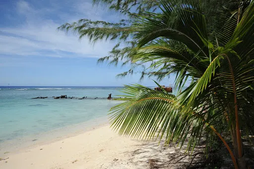 特維克斯伯裏海灘位於羅塔西南角的千椰林旁。這片海灘由不遠處的礁石層層包圍,因此太平洋的風浪從來都不會打破這裏的恬靜。半身深的淺海泛着乳白色的光芒,與千椰林的綽約樹影交相輝映。