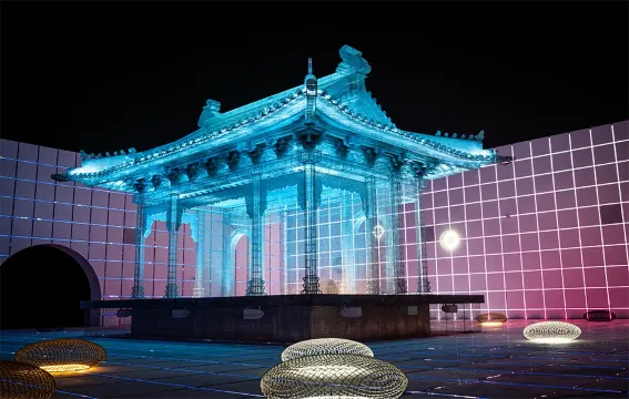 這麪長328米的夯土牆,到了夜晚將會變身成為328米的超長“畫卷”,會動的《清明上河圖》《千里江山圖》將以投影的形式幻化在牆面上。