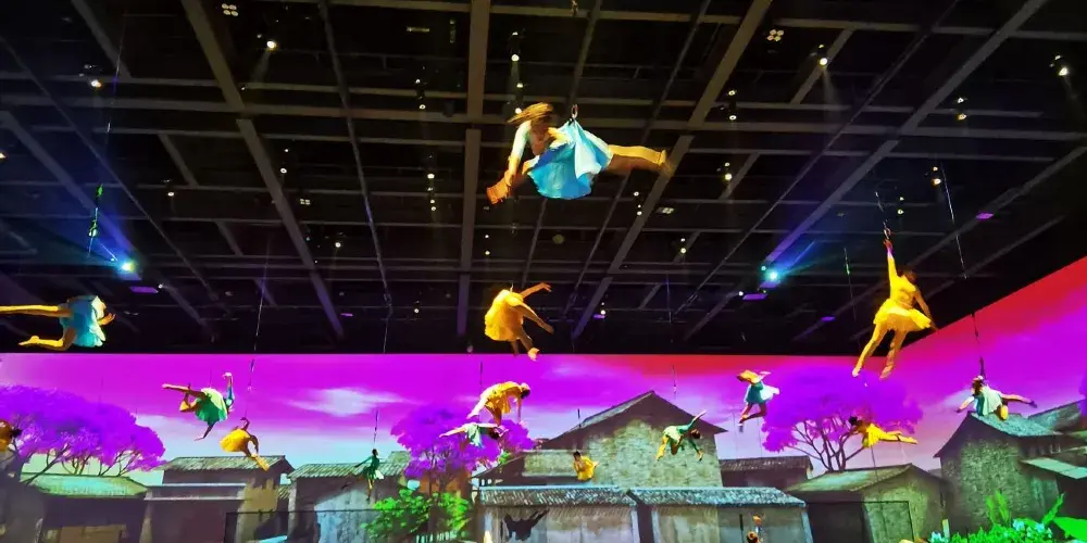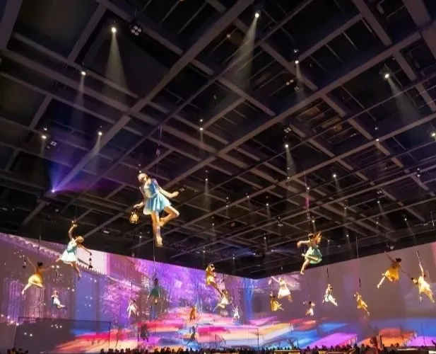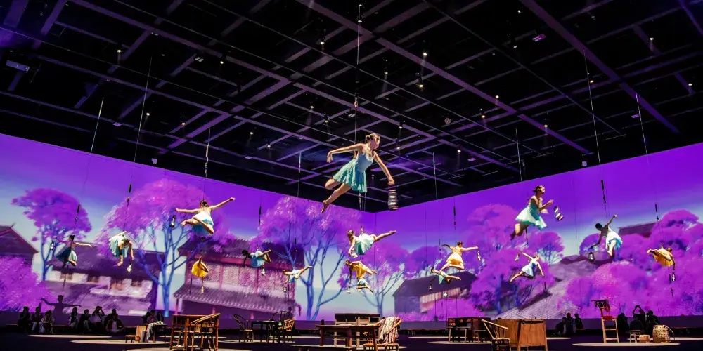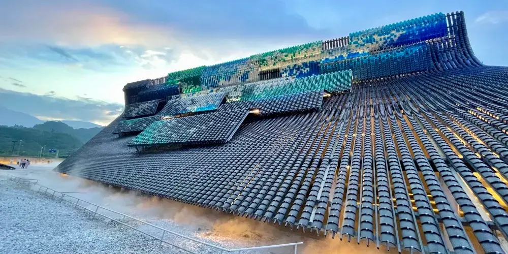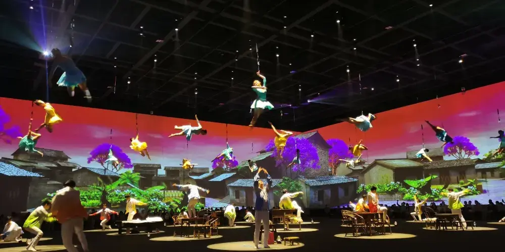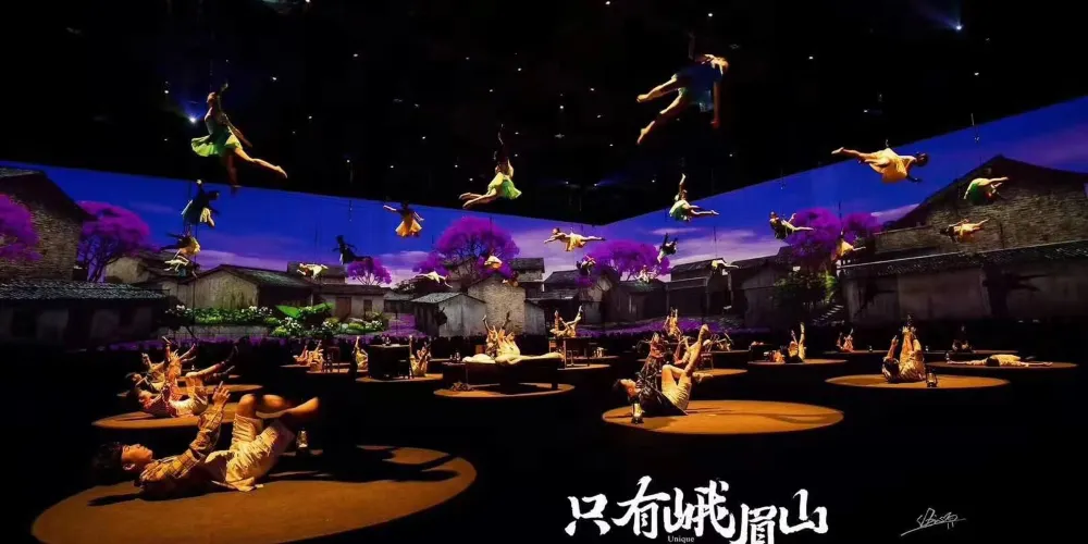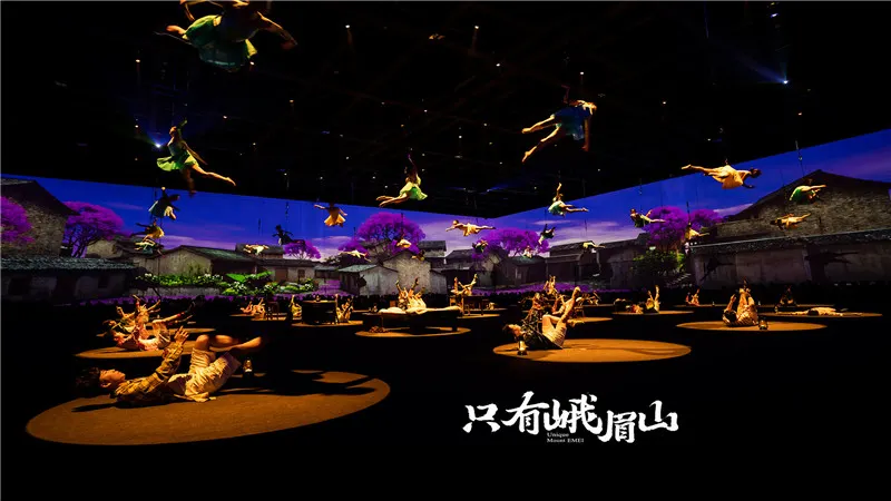 《衹有峨眉山》戲劇幻城由“雲之上”情境體驗劇場、“雲之中”園林劇場、“雲之下”實景村落劇場構成,共同呈現峨眉山自然人文的極致之美以及中國文化的獨特魅力。“雲之上”俯瞰大地蒼生一場關於時空、夢境、奇緣、追逐、牽掛等包含真情實感的劇目,讓觀眾移步換景,穿梭於六個自然影像空間,聆聽六個不同的故事與戲劇。一場別開生面的洗禮,一次身心沉澱的過程,讓外在的視覺震撼點燃內心的心靈震撼。“雲之中”漫步縹緲雲間8000平方米的夢幻霧森形構出“雲海漫過屋頂”之感,50萬片瓦片搭建勾勒出“千里江山圖”,營造出一個背靠青山、腳踩屋檐的人間仙境,30個戲劇表演點,步步是戲,處處如畫。“雲之下”感受童年鄉愁逼真的場景設計,飽滿的人物塑造,極具歷史感的老物件,描摹出上世紀80年代的“四川農村圖鑒”,一出出或温情感人,或啼笑皆非,或光怪陸離的戲劇正在每家每户上演……