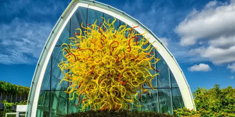 奇胡利玻璃藝術園是一個位於西雅圖中心的展覽館,美國玻璃藝術家奇胡利因其作品風格獨特而聞名世界,而這座展館正是以奇胡利作品為主的玻璃藝術展館。園內展覽分為室內區和室外區,室內展品多為奇胡利多年間盛行的作品,色彩亮麗的玻璃製品與室內的燈光搭配,彷若被賦予了鮮活的生命力;室外則以一個巨大的玻璃展廳為主,展廳裡陳列著由玻璃組成的懸浮雕塑,隨著自然光的變化而變化,非常美麗。