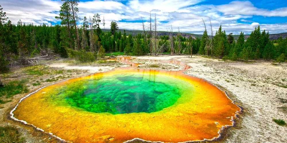 老忠實間歇泉位於美國懷俄明州黃石國家公園,是世界上有名的間歇泉之一,以其規律的噴發而聞名。每隔約90分鐘,間歇泉會噴出水柱。遊客可在噴發前查看訪客中心的預測時間,通常準確率較高。