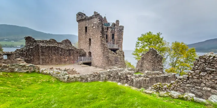 厄克特城堡矗立於因佛內斯南側腹地、尼斯湖北畔的絕壁之上,居高臨下、三面環水,一度是易守難攻的軍事堡壘,也是蘇格蘭高地上最重要的古代遺迹之一。現在它留給世人的只是一些殘垣斷壁,據說是1691年城堡守軍兵敗,為了防止城堡被敵人佔領而自行炸毀的。
