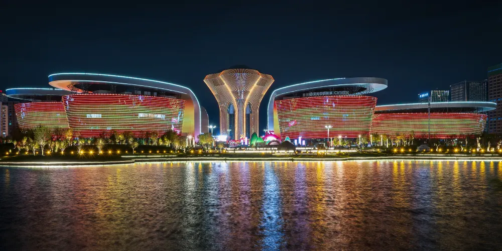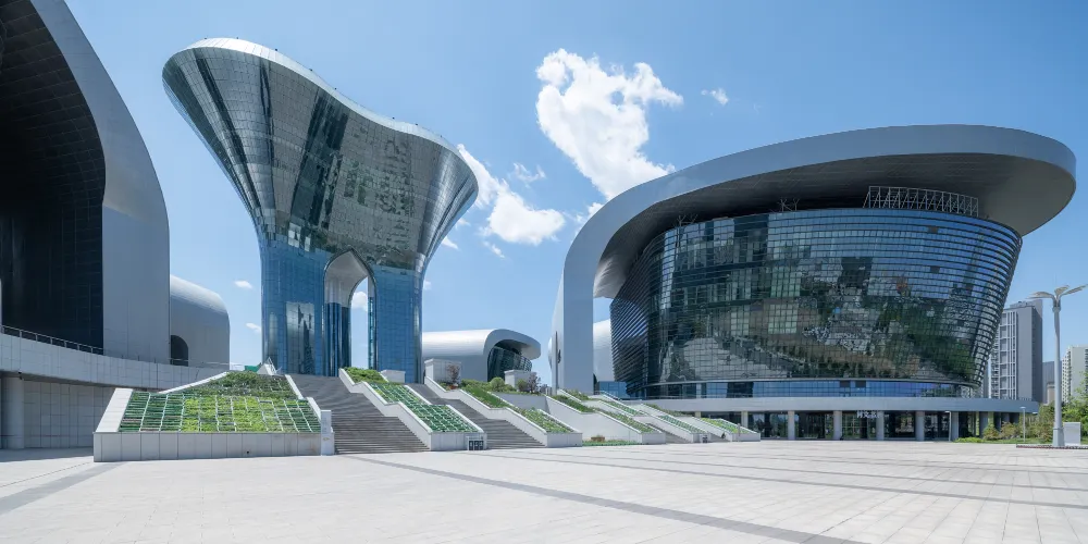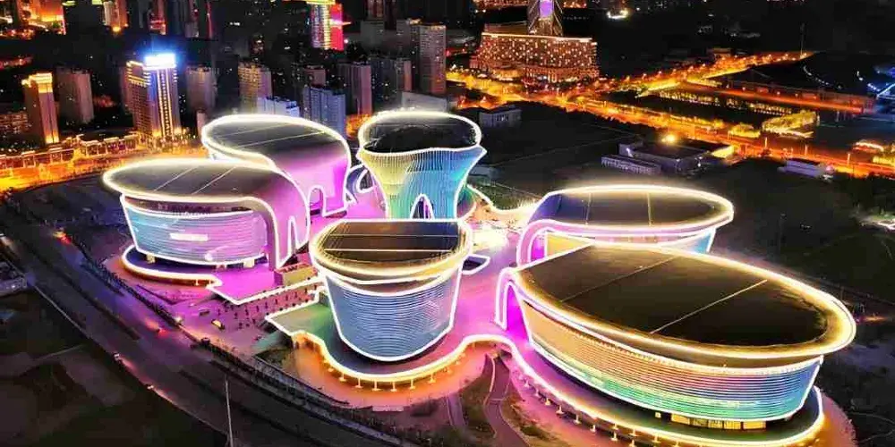 烏魯木齊文化中心位於水磨溝區會展中心片區,佔地約19.57萬平方米,建築面積達25.65萬平方米,以天山「雪蓮」為設計靈感,由大劇院、音樂廳、博物館、規劃館、展覽館、文化館六大場館環繞中心文化塔組成,象徵民族團結與繁榮,被譽為六大館心。