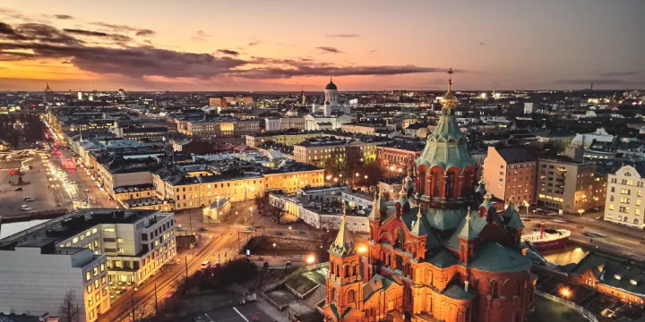 烏斯別斯基東正大教堂建於1862年,位於卡達亞諾伽半島的山坡上,歷時六年完工。是斯堪的納維亞半島上較大的東正教教堂,芬蘭人又稱它為“俄羅斯教堂”。教堂外部由紅色的主色調配上具有代表性的洋蔥頂構成,內部穹頂描繪著華麗的飾畫與宗教典故雕飾,具有濃郁的傳統東正教堂藝術風格。教堂共有十三座塔,所有尖塔上的十字架面向東方,象徵耶穌和十二使徒,外形十分醒目。