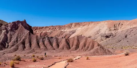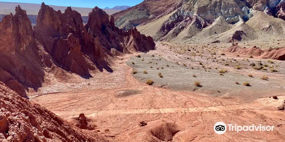 Valle Arcoiris是智利聖佩德羅-德阿塔卡馬附近的獨特地質奇觀,以其絢麗的色彩和古老的岩畫而聞名。這個山谷位於阿塔卡馬沙漠中,因富含礦物質的岩層在陽光照射下呈現出紅、綠、黃、白等多種色彩,宛如彩虹般絢麗,因而得名。 Valle Arcoiris的形成源自於數百萬年的地質變遷,其岩層由火山沉積物和礦物質氧化作用共同塑造,呈現出類似火星或月球的奇異景觀。遊客可以在這裡欣賞到6000年歷史的馬坦奇拉岩畫,這些古老的壁畫記錄了早期人類的生活與信仰,極具考古價值。對於熱愛地質、攝影和探險的旅客來說,Valle Arcoiris是一個不可錯過的目的地,展現了阿塔卡馬沙漠獨特的自然與人文魅力。