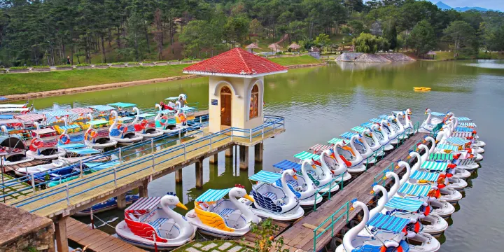大叻市郊的山區中,因為兩側山崖如情人相依而立,所以得名情人谷。山崖間的小湖清澈透明,四周都是廣闊的草原和樹林。生長在樹林間的玫瑰花、茉莉花更為情人谷增添了浪漫色彩,是情侶們和當地人喜歡的郊遊之地。除了自然風光,情人谷還像個遊樂場,有雕塑、鮮花,還有小火車和木屋。
