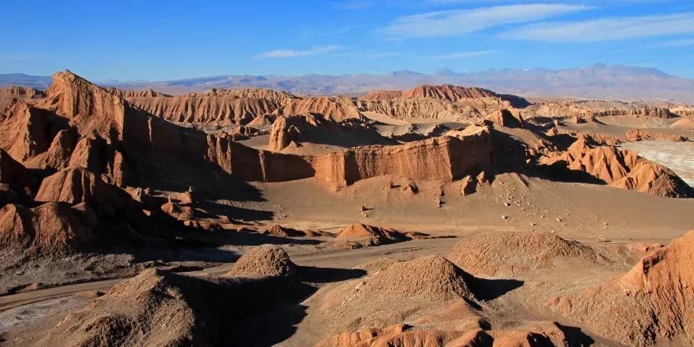 月亮谷是一個以其月球般地形而聞名的自然景觀。這裡的地形由風和水的侵蝕作用形成,展現出奇特的岩層、沙丘和鹽地,彷彿置身於另一個星球。遊客可以在此體驗壯觀的日落,夕陽將山谷染成金色和粉紅色,令人嘆為觀止。
