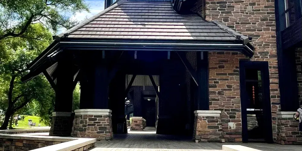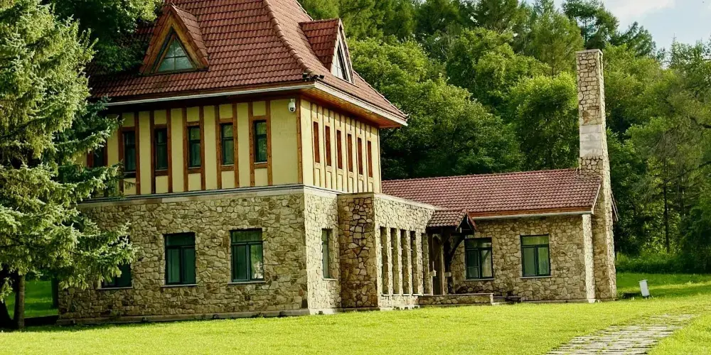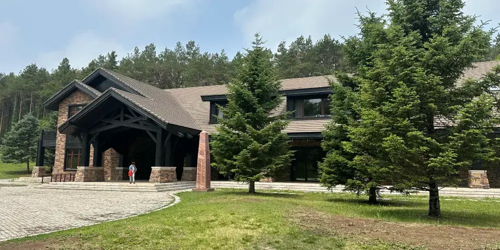 淨月潭瓦薩博物館是國內首個以瓦薩越野滑雪運動為主的博物館。舒展大氣的斜坡屋頂造型、敦厚質樸的建築氣質,延續了瓦薩滑雪運動發源地——瑞典本土傳統建築風格。石材牆面粗獷強悍,實木木質外牆疏密有致彼此交錯,屋簷梁架造型優美,整體建築與淨月潭自然環境巧妙結合,渾然一體,充分再現人與自然的和諧。