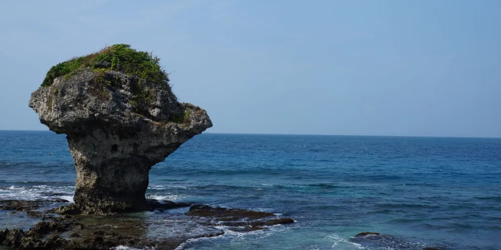 VaseRock是一大塊隆起的珊瑚礁巖,下端受海浪侵蝕而變細,巖石上端長滿了綠色植物,好像一個插了花的廣口細腰瓶,因此被稱為花瓶巖。