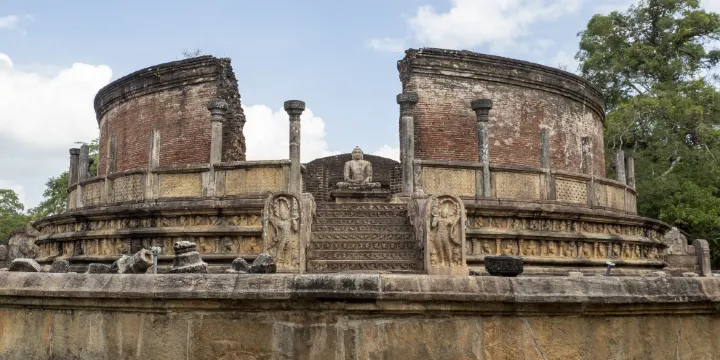 圓形佛舍是東古城中精巧典雅的建築,也是創建於東古城時期古代蘭卡獨特的建築之一。通常認為這個佛寺建於波隆納魯沃成為首都之前的7世紀左右。佛舍圓與方的構圖、精美的月亮石和守護石以及石階上手舞足蹈的侏儒共同營造出一幅具有美感和神聖氣息的畫面。