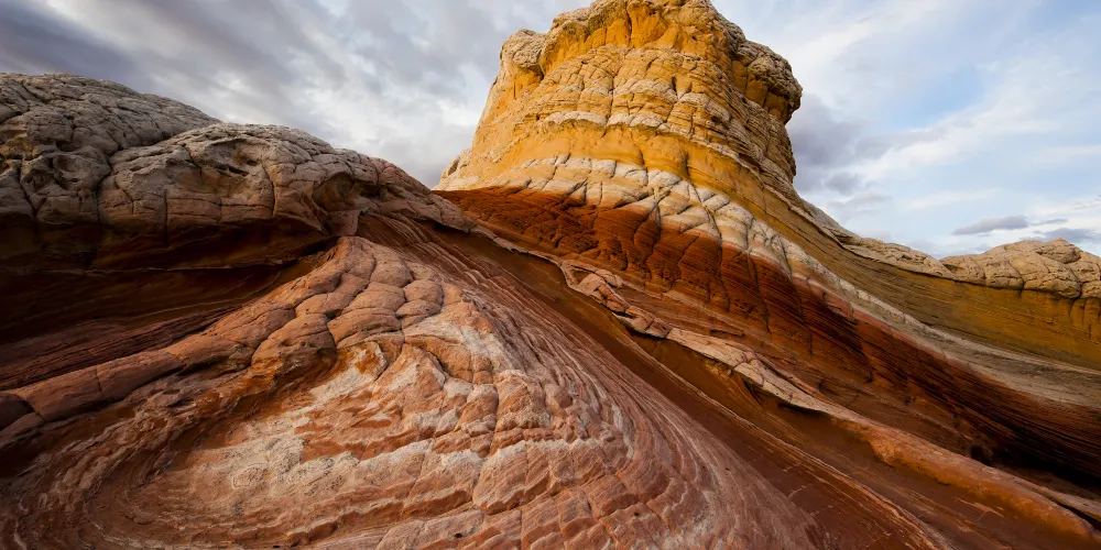 Vermilion Cliffs National Monument位於美國亞利桑那州和猶他州交界處,以其壯觀的地質景觀和豐富的自然歷史而聞名。這個國家紀念碑佔地約293,000英畝,擁有色彩斑斕的懸崖、波浪狀的砂岩地形和古老的岩畫。