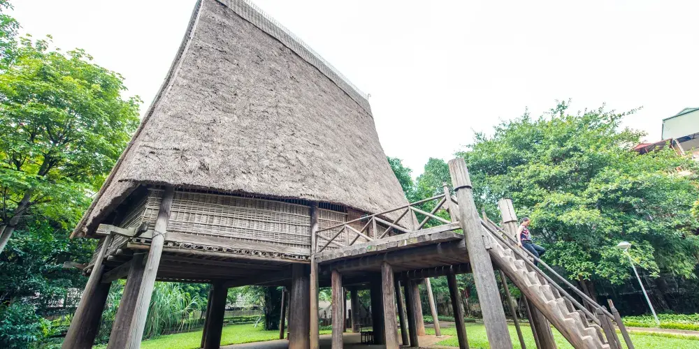 越南民族學博物館是越南有傳統文化特色的博物館。博物館分為室內和室外兩個部分,室內有兩層,介紹越南所有民族。室外有許多原住民的住屋、墓室和平房等。博物館內有兒童空間、紀念品小賣部、小飯館和大會場等。室內主要展示各個少數民族的民族服飾、樂器、婚喪用品、祭祀用品和日常所用的工具等等,另外還有地圖、錄影和模型相輔。從圓錐帽的製作方法到薩滿教的慶典儀式,充分展現了越南文化的多樣性。室外展區搭建起各個民族獨特的屋舍。人們可以進到屋舍內,親身體驗一下這些少數民族的普通生活,深入了解他們的文化曆史。參觀者需要從房前傾斜的木梯爬上竹屋的平台,拖鞋後方可走入屋內。屋頂是由粗大的乾草鋪設而成,前後屋脊程70度夾角,將屋子撐得異常高大。