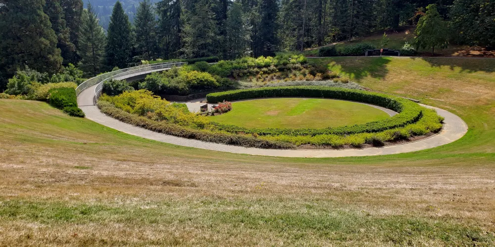 園區兩旁的步道鑲嵌的地磚上,是1907年至今的曆屆玫瑰皇后的親筆簽名,也讓不少人注足凝視。此外,公園裡還附設有世界森林中心、日本庭園和動物園等。公園旁的動物園是亞洲叢林之外的亞洲大象培植地。在動物園中,正有穿西裝的企鵝遊行表演,公園和動物園之間是用動物園鐵路的火車頭連接起來。在這個有名的公園內,還附設有一座俄勒岡科學博物館。