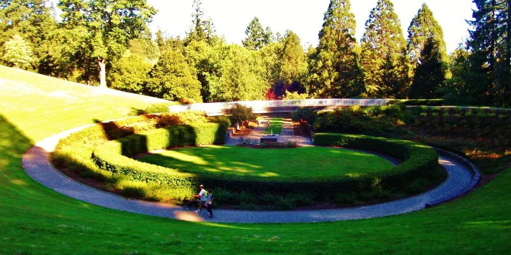 華盛頓公園是波特蘭著名的觀光場所,位置在西側一個小山上,園內設有聞名於世的國際玫瑰試驗場,這是一個玫瑰原產地與試驗農場的混合試驗場,時常培育新品種和改良品種的珍貴玫瑰,因此對愛好園藝的人來說,這裡的確具有相當的魅力,園內有五百多種玫瑰品種,一萬多株玫瑰,每年五月中旬至十一月,玫瑰盛開,最是動人。
