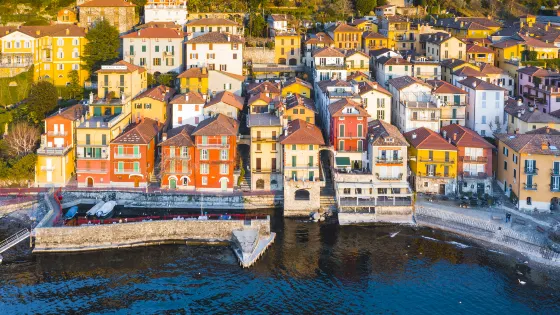 Bellagio作為世界上大受歡迎的旅遊勝地之一,位於科莫湖中央的岬角尖上,提供前往湖兩個支流方向的渡輪服務,遊客可以在Bellagio參觀翠綠的Serbelloni別墅公園和Melzi別墅。岬角曾經被繼續人工伸向湖里,將湖水分割成兩個較低水位的支流,這是亞歷山德羅·塞貝洛尼的心血結晶,他是當時倫巴第高貴富有的家族首領之一。