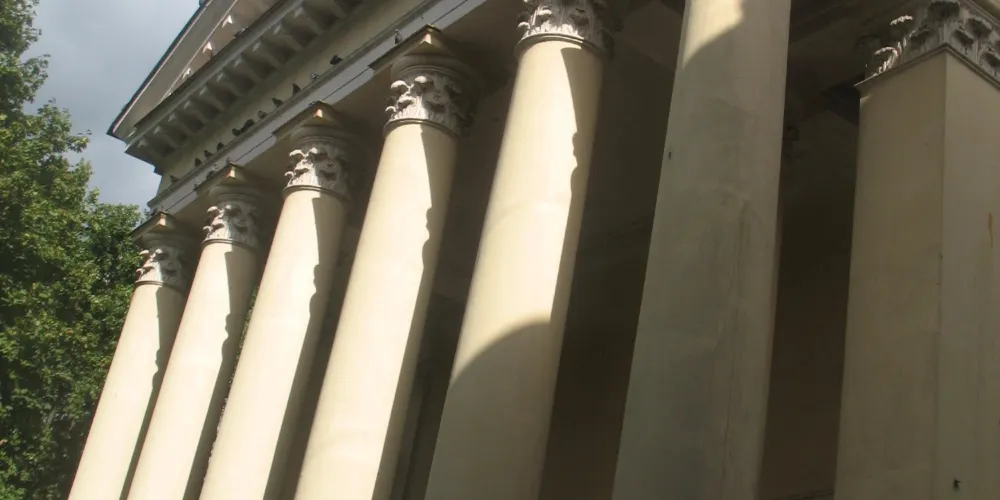 維爾紐斯大教堂坐落在格季米納斯山腳下寬闊的教堂廣場上,修建於1387-1388年,是一座哥特木結構教堂,後來經過了多次修複,逐漸融合了哥特式、文藝複興時期和巴洛克風格。 教堂正面山牆上立著三尊塑像。大教堂旁是52米高的鐘樓,為13世紀-17 世紀古城堡的瞭望塔,記憶體17座鐘錶。教堂內的聖卡西米爾禮拜堂是巴羅克風格的,裡面有描繪這位立陶宛聖徒生平的壁畫和他的銀棺。