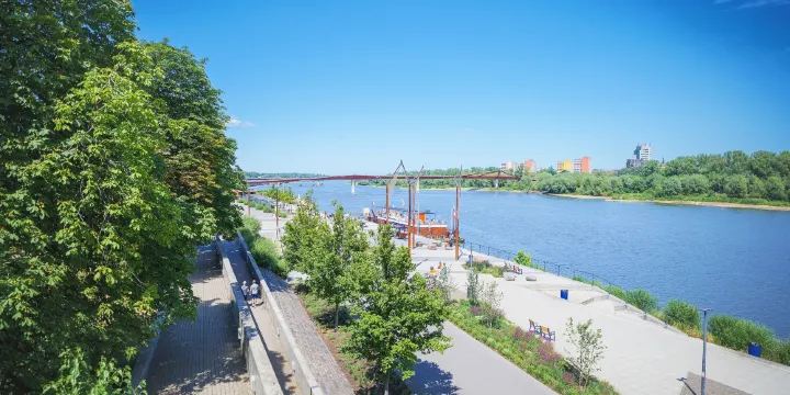 Vistula Boulevards是華沙市中心沿著維斯瓦河左岸建造的濱水長廊,連接了舊城區、新城和波維什萊地區,成為城市有活力的公共空間之一。這條近6公里長的濱河大道於2013年開始重建,2015年逐步開放,旨在提升城市與大自然的連結。河畔區域經過設計,整合了多種便利設施與觀景元素。沿途設有休憩長椅與照明系統,提升了夜間遊覽的舒適度。部分段落可能建造了延伸至河面的觀景平台,讓人們近距離欣賞水景與城市天際線。大道沿線也分佈著一些餐飲服務點,如咖啡館與小食亭,為訪客提供補給。此外,河岸區域有時會成為公共藝術裝置或臨時文化展覽的展示場所,增添了文化氛圍。