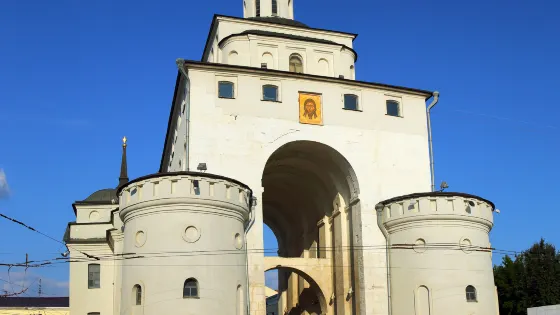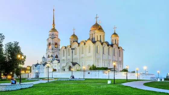聖母升天大教堂坐落在市區克利亞濟馬河岩陡峭高地上,是俄羅斯現存最古老的教堂。以12世紀當地流行的“無色人工寶石建築結構”而聞名,是12世紀俄羅斯建築中最偉大的創造之一。在12到15世紀期間,沙皇都在此加冕。在共產主義禁教時期,唯有此教堂仍為民眾敞開大門,受到東正教的推崇。到了19世紀,由於原教堂不再使用,在原教堂右側蓋了白色大石教堂。教堂內還有文化中心、圖書館等。
