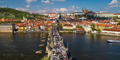 美麗的伏爾塔瓦河將布拉格城一分為二,東岸是老城和新城,西岸是小城。橫跨在河上有十幾座或古老或現代的大橋,將兩岸城區聯為一體。其中,最著名的要數連接布拉格老城與小城的查理大橋,橋上兩側裝飾著各種雕塑和浮雕,被譽為“歐洲的露天巴洛克塑像美術館”。