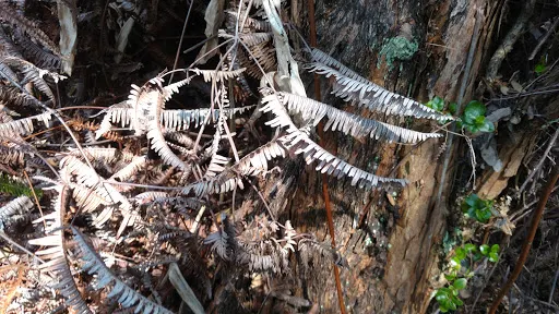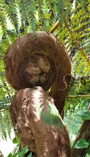 在火山口鏈路交叉路口的東面是一個位於基拉韋厄迎風坡的熱帶雨林,裏面滿是當地的樹蕨和桃金娘花樹。它位於一條小徑的終點,這條小徑穿過一片鳥語花香的桃金娘樹林。熔巖通道本身很寬,當熔巖流的表層開始變硬,而下面的熔巖仍在流動的時候,熔巖通道就形成了。內部的熔巖流幹了以後,表層的外殼依然還在。東夏威夷島上有很多熔巖通道,這是其中一條較大的。走完一段有燈光的路,後面還有很長一段,帶一把手電筒比較好。