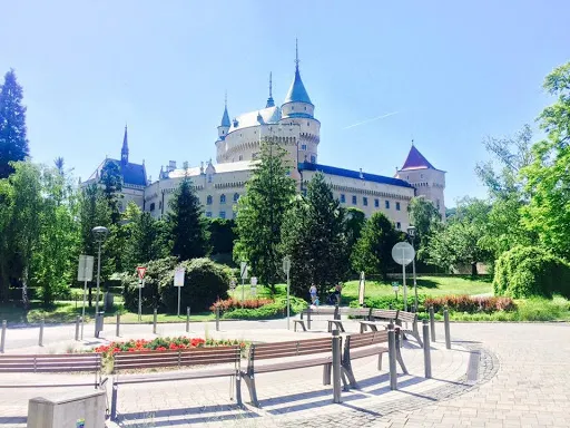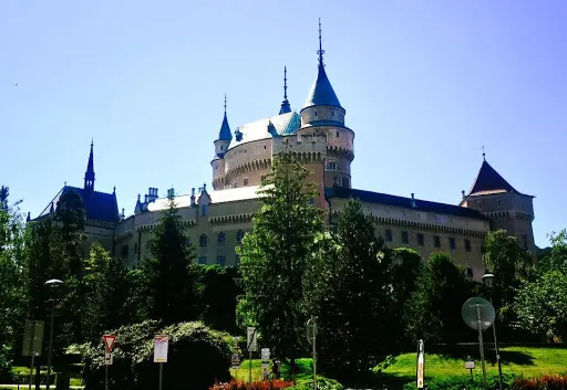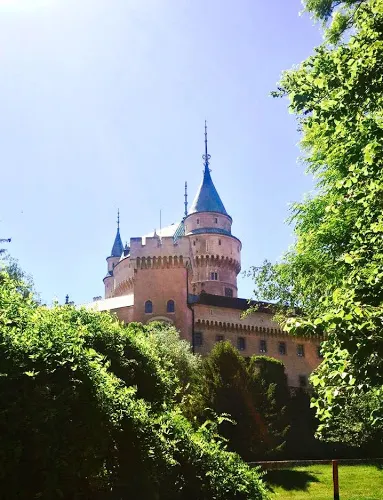 它是斯洛伐克較漂亮豪華的城堡,矗立在在茂密森林中,細長的圓柱高塔從森林裏竄出,線條優美的尖頂,造型夢幻,色彩粉嫩的城堡是迪士尼中睡夢人城堡設設計的原形。城堡建於12世紀,是結合羅馬式、哥德式與文藝復興式的建築。