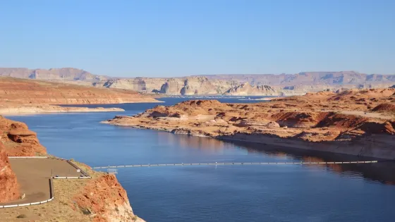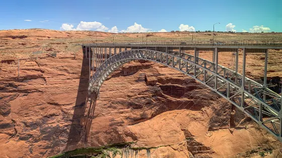 格倫峽谷大壩是美國第二大水壩,由舊時將軍格蘭建造,凌駕於格蘭峽谷之上,其216公尺高的弧形壩體與赭紅色砂岩峽谷形成震撼對比。