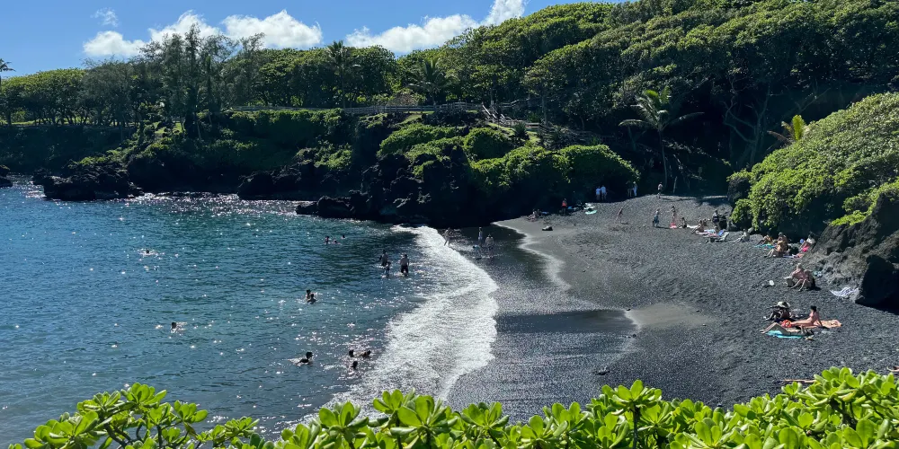 懷阿納帕納帕州立公園位於茂宜島東側海岸線上,你可以在公園的洞穴中遊泳,在黑沙灘上做日光浴,在古夏威夷遺迹中探索,陽光普照的小徑和海灘營地都非常值得你細細遊玩,這絕對是一個活動豐富的公園。