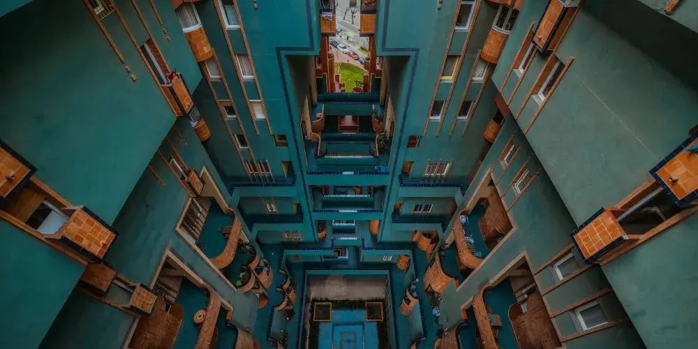 是一座特色建築,也是一個水泥廠的舊址。該建築外觀為茶紅色,走廊為藍綠色,陽台層層疊疊,造型及配色都非常前衞,很有藝術感。