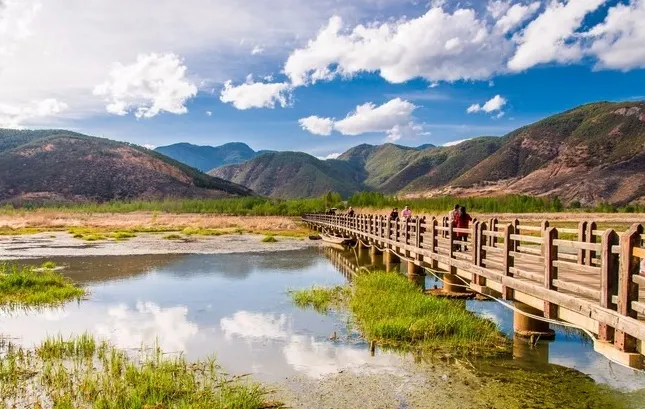 走婚橋在瀘沽湖東側,長約300米,兩側是生長在草海水中的大片蘆葦。走婚橋是瀘沽湖周圍的一處著名景觀。摩梭族奉行“男不娶,女不嫁”的走婚習俗,而走婚時男子都會經過走婚橋去往女方家裡,因此這座橋也被稱為:“天下一鵲橋”。