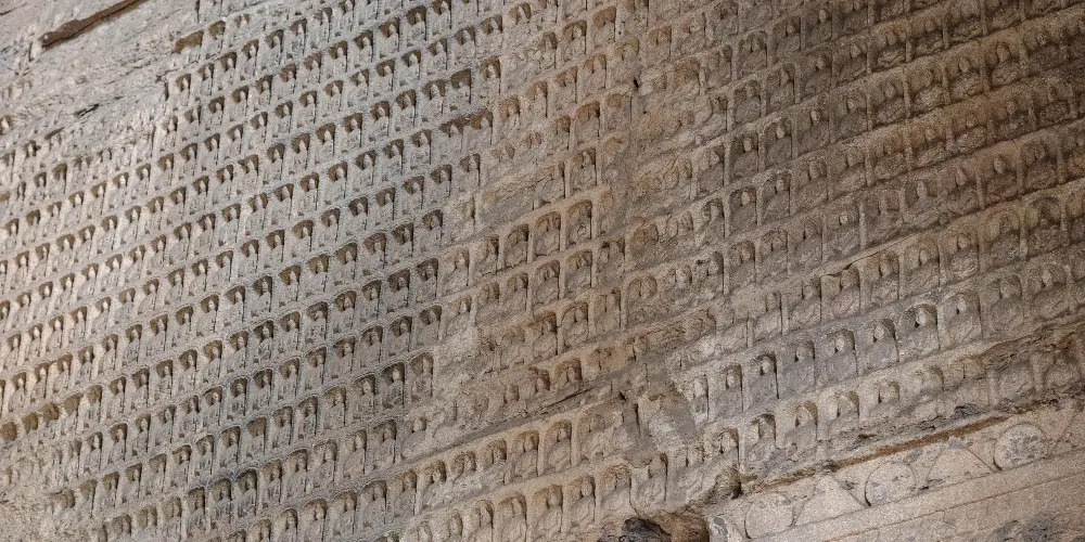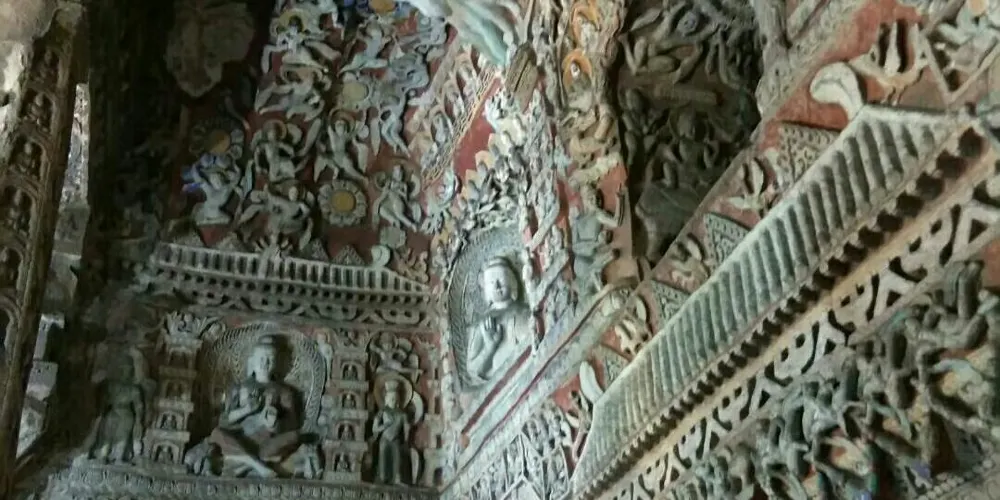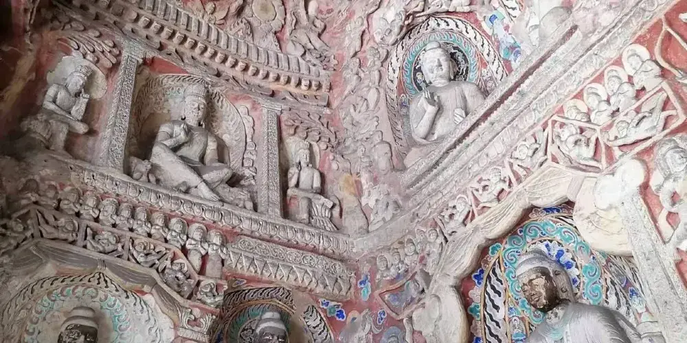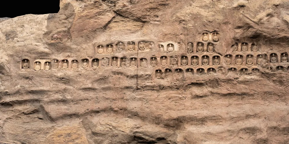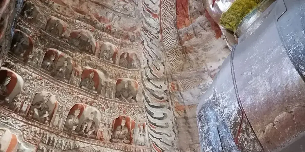 大同萬佛洞 (第十五窟)是雲岡石窟的典型千佛像窟,以數量眾多的佛像著稱,現存約8900尊造像,因此也被稱為「萬佛洞」。千佛的開鑿流行於北魏,源自於「三劫三世千佛」用語。每一劫世中各有一千人成佛教化眾生,這就是「三劫三世千佛」。十方諸佛是無數無量的意思, 「千佛’、「萬佛」指數量很多,不一定是「一千」或「一萬」。「萬佛洞」內雕鑿大同小異,佛像造型各異排列整齊,遍布石窟里外四周。