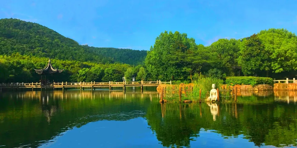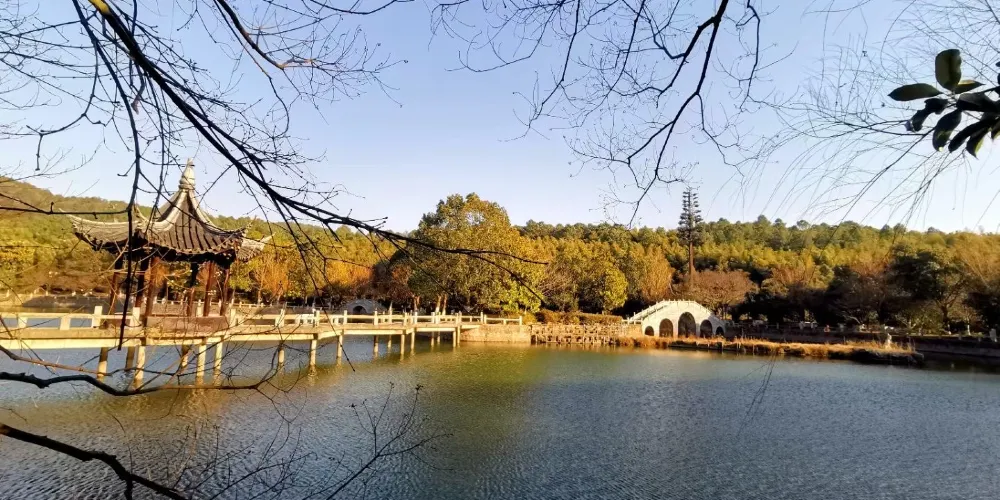 蘇州上方山國家森林公園位於蘇州市區西南約5公里處,是石湖風景區的核心景群。這裡青山秀水,一派江南田園風光,既可踏青賞櫻,也有多處古蹟值得一看,是蘇州近郊的賞花勝地。還能在這裡划船、登高,也可以在草坪搭個帳篷賞花遊玩,在燒烤區享受樂趣與美味,與家人一起過個休閒假日。